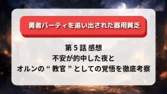 一方で、「ビジュアル面や“なろう原作っぽさ”への先入観でスルーされがち」という指摘もあり、内容への評価と作品の露出度に少しギャップがあるようにも見えます。私の感覚では、第5話のようにキャラの関係性がぐっと見えてくる回が積み重なっていくことで、「途中からじわじわハマってきた」という視聴者が今後さらに増えていくのではないか、という期待も抱きました。