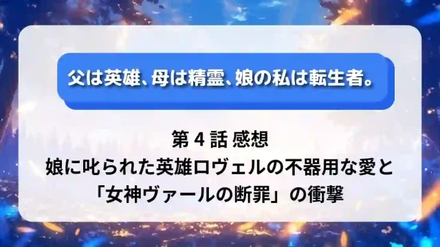 2025年 秋アニメ 『父は英雄、母は精霊、娘の私は転生者。』第4話 感想:娘に叱られた英雄ロヴェルの不器用な愛と「女神ヴァールの断罪」の衝撃